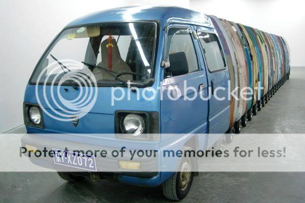 Through May 24, 2010: In the second floor Projects Gallery at MoMA, Yin Xiuzhen presents a large-scale sculptural piece titled “Collective Subconscious”. The installation consists of a reconstructed steel minibus draped with used clothes and found materials. For this work, Xiuzhen invites the public to enter and sit on benches inside the vehicle while listening to Chinese pop music in the background. Visitors are thereby transported into a unique environment that breaks from the conventional setting of a quiet museum space.